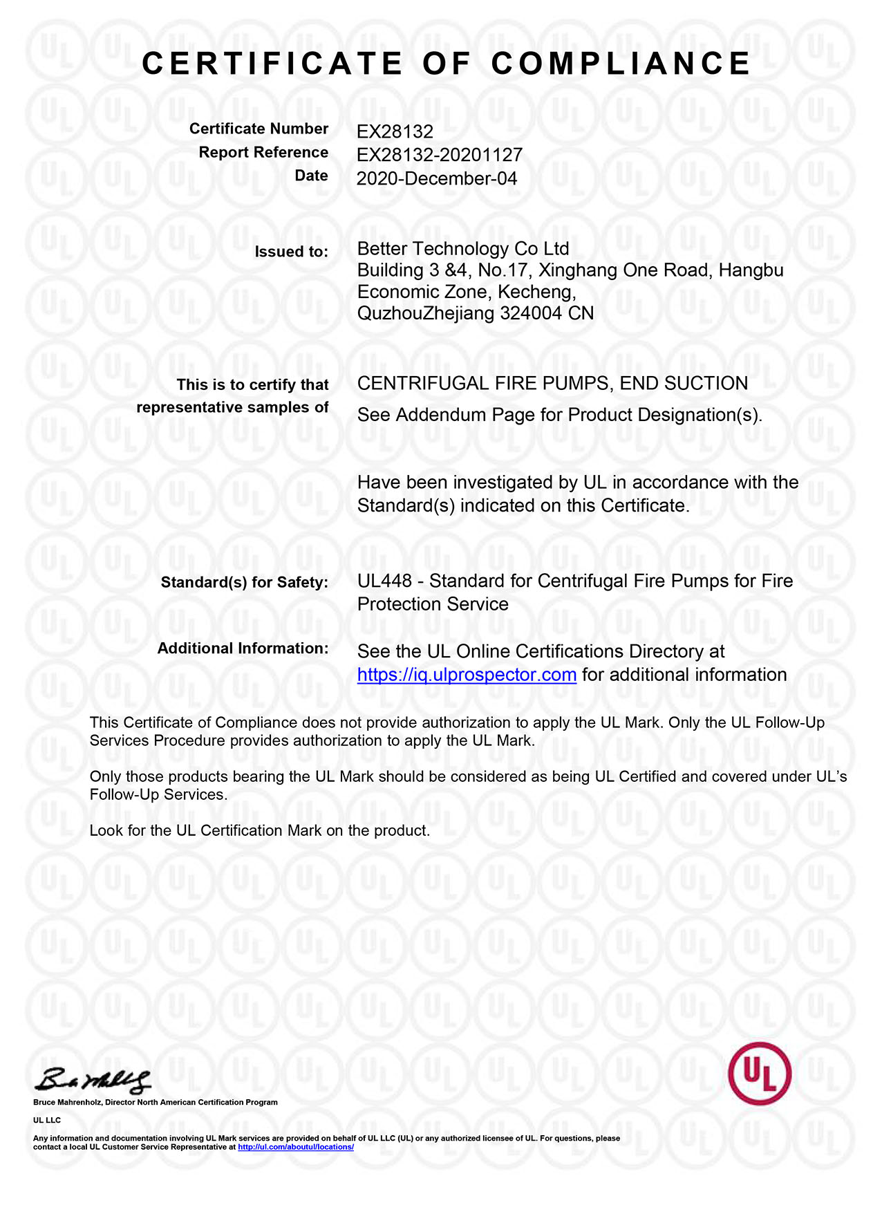 公司本著不斷開拓、精益求精的精神,始終以產(chǎn)品質(zhì)量為重中之重,在行業(yè)中一直保持領(lǐng)先地位。率先通過行業(yè)尖端消防產(chǎn)品美標(biāo)UL、歐盟CE認(rèn)證,以及通過ISO9001質(zhì)量管理體系、ISO14001環(huán)境管理體系認(rèn)證、ISO18001職業(yè)健康安全管理體系認(rèn)證。公司目前已擁有世界領(lǐng)先的智能水泵型式試驗(yàn)檢測設(shè)備以及在線電機(jī)試驗(yàn)測試系統(tǒng)等,優(yōu)秀的產(chǎn)品和服務(wù)獲得了中外客戶的廣泛好評。