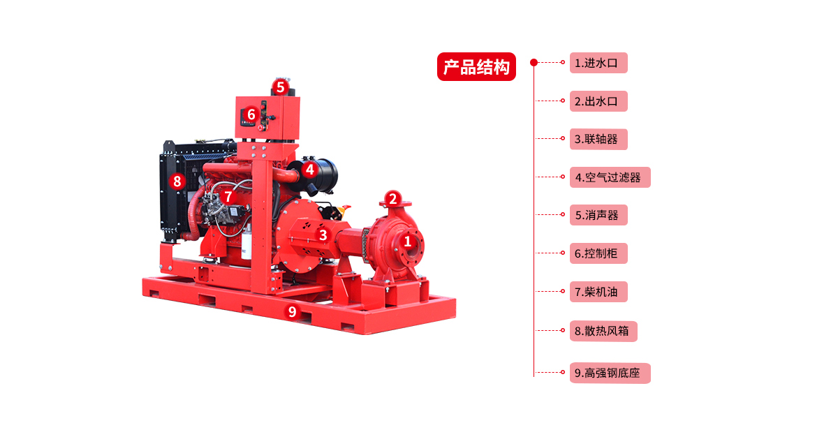 XBC-ISO柴油機消防泵組該系列設(shè)備按所配用的消防泵(單級單吸式、單級雙吸式、節(jié)段多級式)可分為XBC-IS、XBC-S、XBC-D等三個子系列,設(shè)備壓力、流量范圍廣,其應(yīng)用幾乎能滿足消防所需的各種場合。具有啟動特性好、過載能力強、結(jié)構(gòu)緊湊、維修方便、使用簡單、自動化程度高等特點,是一種先進、性能可靠的消防設(shè)備。并獲得消防產(chǎn)品3CF認(rèn)證證書。