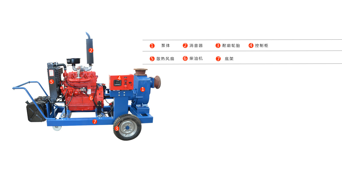 2.手推式強(qiáng)自吸移動(dòng)泵車主要由真空輔助裝置、柴油機(jī)動(dòng)力包、柴油機(jī)專用油箱、泵傳動(dòng)系統(tǒng)、設(shè)備底座、自吸泵總成、防雨設(shè)施、起動(dòng)裝置、起動(dòng)電源裝置、進(jìn)水管總成、出水管總成、二輪移動(dòng)拖車系統(tǒng)、快速起吊裝置等組成。