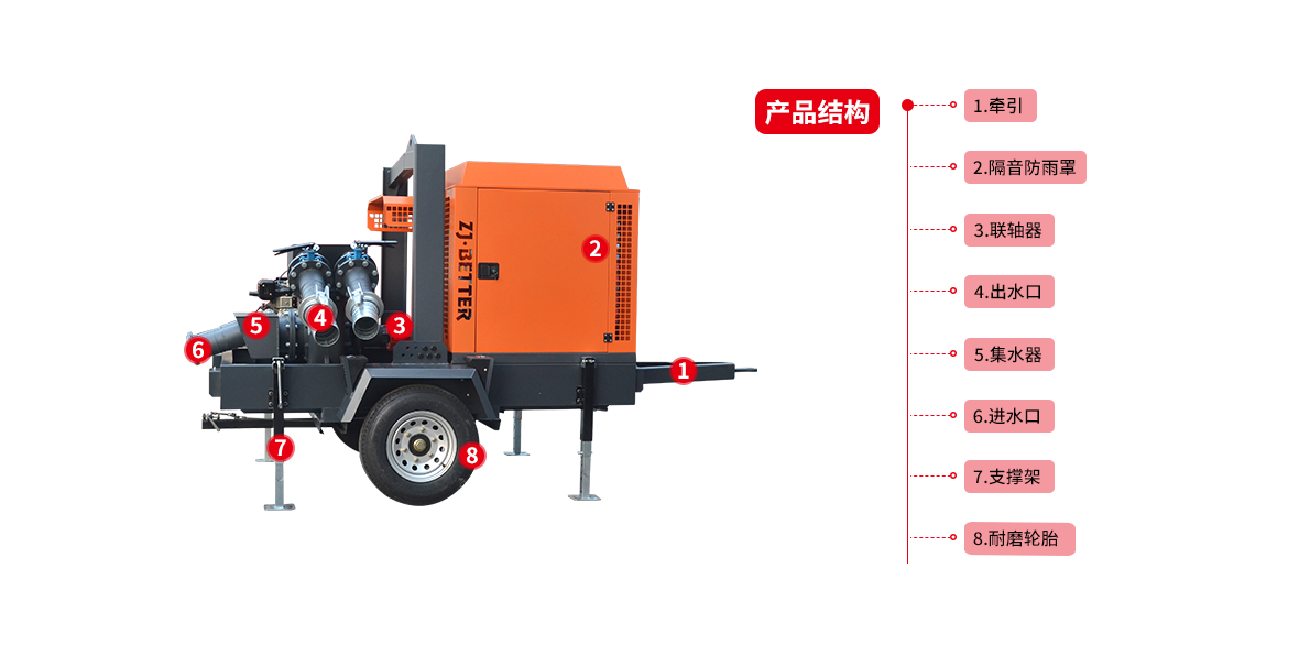 2、自吸時(shí)間短,出水流量大,機(jī)動(dòng)性強(qiáng),能適應(yīng)各種氣候環(huán)境。