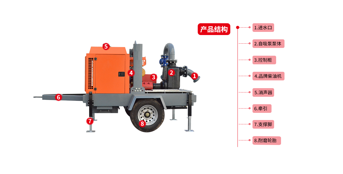 6)該泵還可以與移動搶險車進(jìn)行配套,以達(dá)到臨時排澇抗旱搶險的目的。